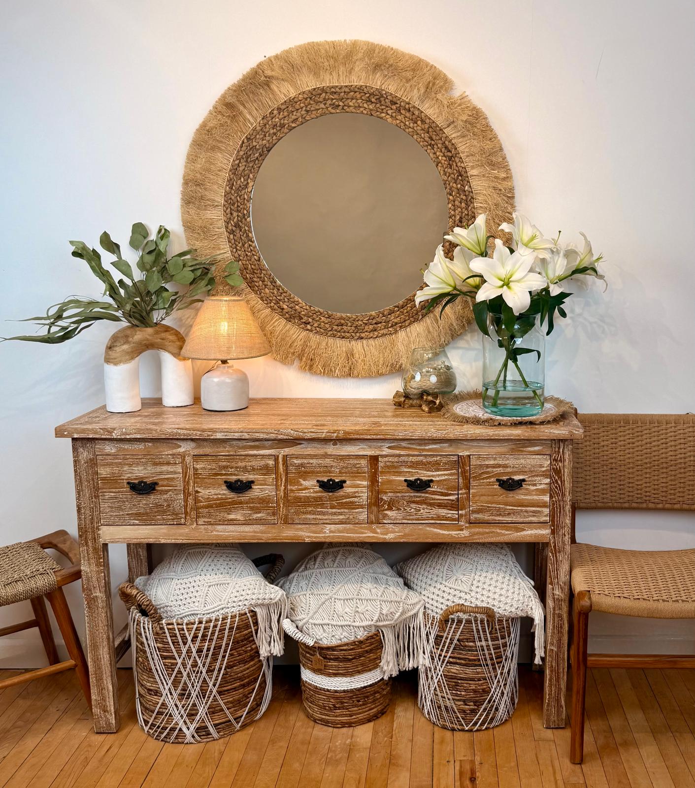 The circular design adds a soft, balanced feel to any room, while the plaited water hyacinth lends a unique artisan touch that makes every mirror one of a kind. Perfect as a statement piece in a hallway, living room, or bedroom, this mirror captures that relaxed, sun-washed aesthetic we love here by the sea in Brighton’s South Lanes.