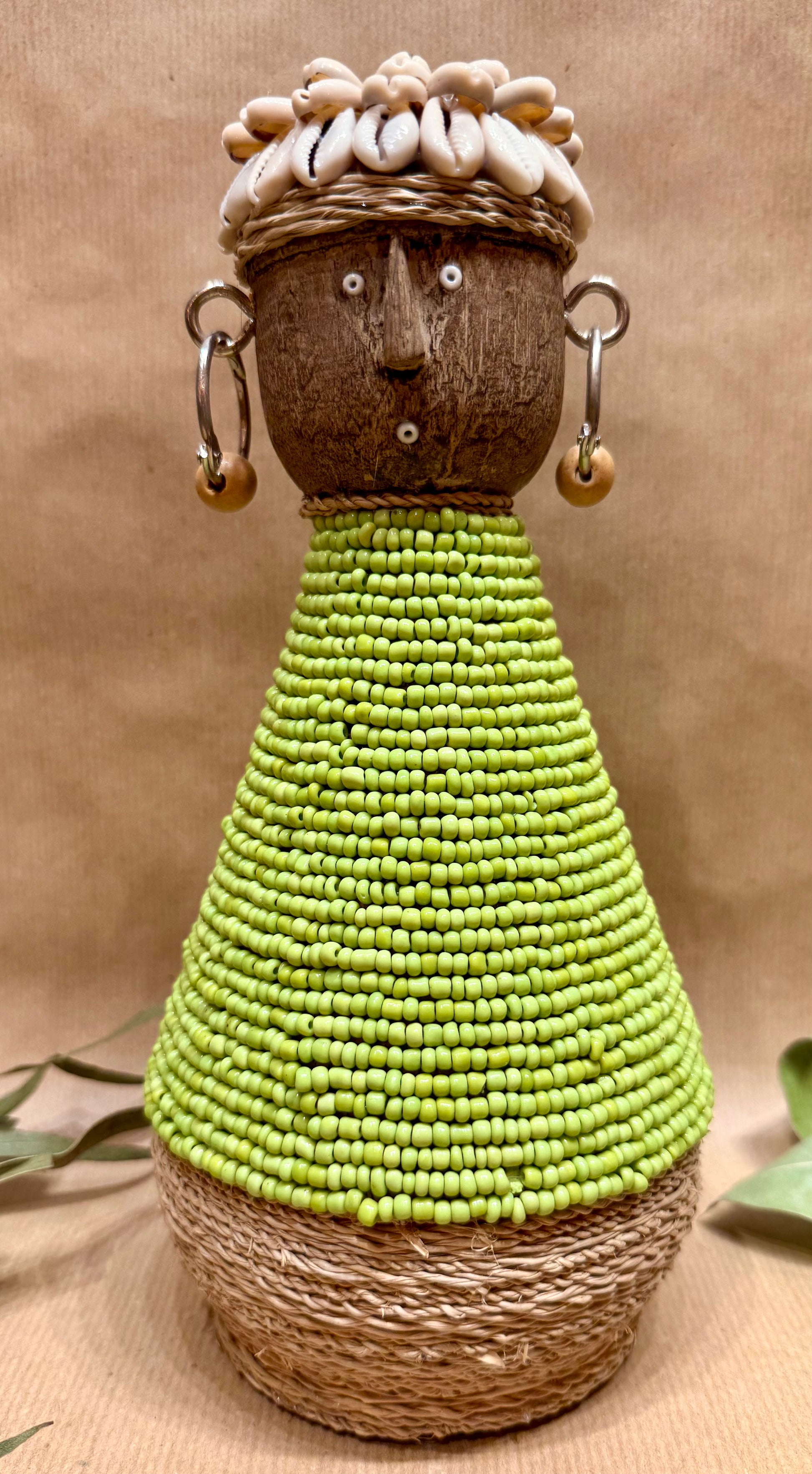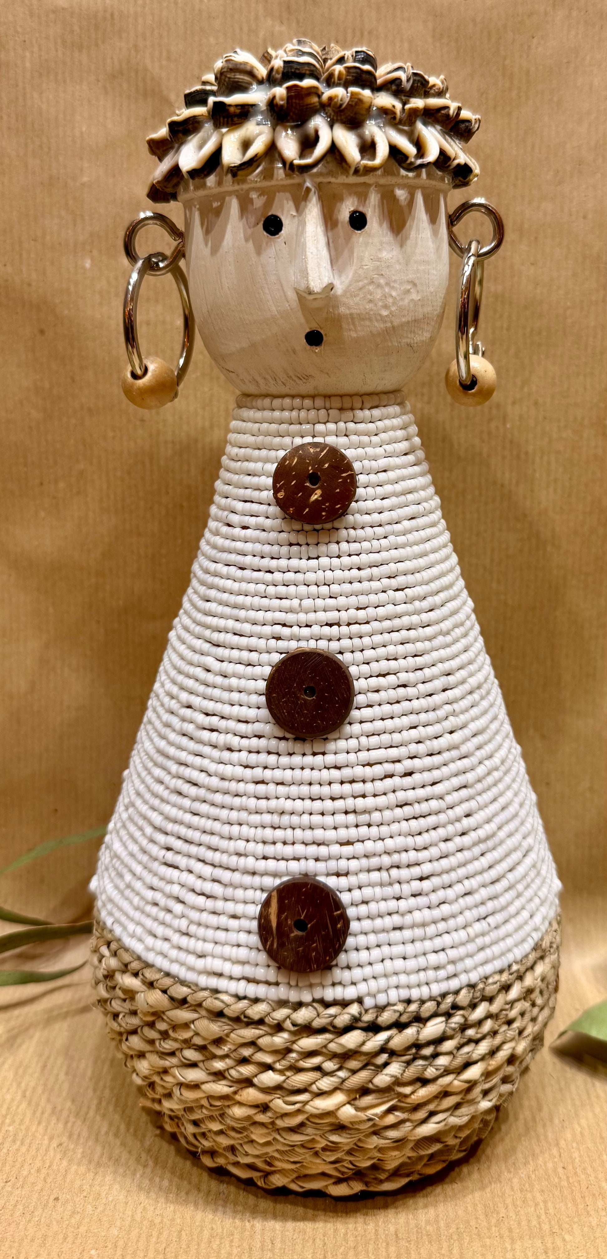 Inspired by traditional African beaded dolls, the Zuri Sculpture is a striking celebration of craftsmanship and heritage. Each figure is hand-shaped and adorned with layers of hand-threaded beads, natural jute detailing, and expressive carved features — embodying both artistry and meaning.